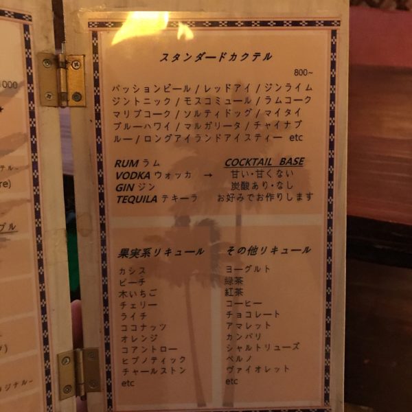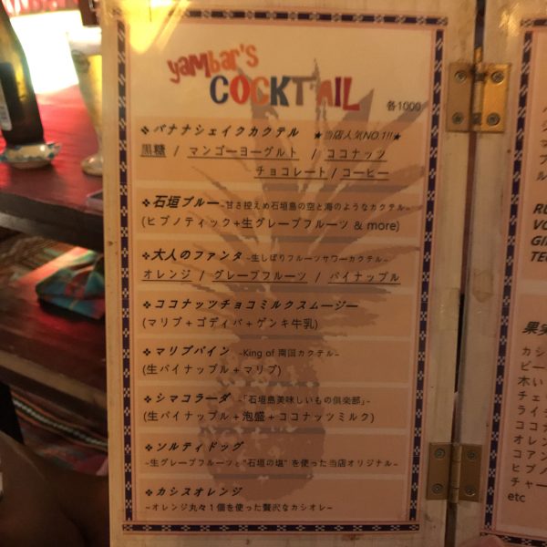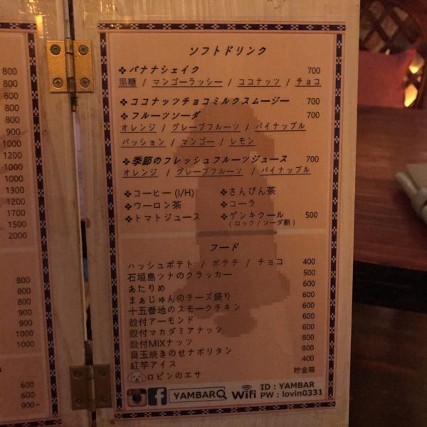 YAM BAR ドリンクメニュー